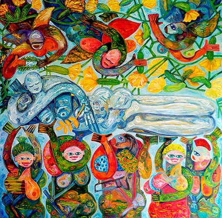 Le figlie del dio Zuk, 2011 - olio su tela, cm 150 x 206 |