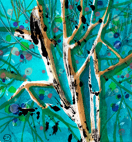 inchiostro e pastello a olio su carta, colorato in Photoshop