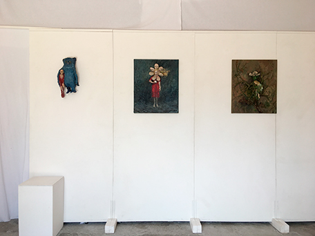 “La pittura di Aistė Gabrielė Černiūtė - dichiarano i curatori - si configura come un laboratorio sperimentale e un punto di osservazione della psyche umana. La materia è plasmata da un’incessante ricerca di senso e da un forte bisogno narrativo: teatro e poesia, commedia e tragedia, realismo e surrealismo, gesto e figura danno vita a intense opere plastiche la cui chiave d’accesso è l’io e le sue metamorfosi. Volti marcati, espressioni smarrite, figure incastrate, teste volanti, azioni interrotte. Viaggio nella testa in Catàgeios diventa profonda interrogazione esistenziale e disvelamento della fragilità dell’essere, che nella frammentazione e nell’instabilità dell’individuo trova il fondamento del suo senso”.
