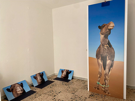 «Пустыня, которая меня окружает, — продолжает куратор, — выводит нас из пространственного языка, по которому можно ходить, и заставляет встретиться с художником, который чувствует, наблюдает, анализирует, диагностирует, пересматривает и воссоздает образ и воображаемое, в тройном — порой парадоксальном — движении поглощения, отторжения и возобновления. Результат почти классический: фотоэкзистенциальная аллегория современности, воплощенная в двух полиптихах 2024 года («Свобода — это мнение» и «Истина — произвольная и убедительная»), где выделяется верблюд, символ силы, сопротивления и самообладания, которому мешают идти и обременяют шею две узловатые веревки, в то время как детали работы подчеркивают экспертную морду животного с удлиненными щелевидными ноздрями, которые препятствуют вдыханию песка, переносимого ветром, позволяя дышать и насыщаться кислородом; а во второй части — перспективная диверсия будущего времени с помощью эко-полемической видеоинсталляции со знаковым названием «Экодогматизм». В искусстве Флавии Мастрелла творческий акт предстает как акт творческого сопротивления, восстанавливающий смысл и социально-политическую функцию искусства через разработку эстетики мысли, чьи корни, несомненно, определяются в чувствах и чувствительном восприятии, и чей контекст исторически находится в так называемой цивилизации образов, обществе зрелищ, эпохе массового кондиционирования».